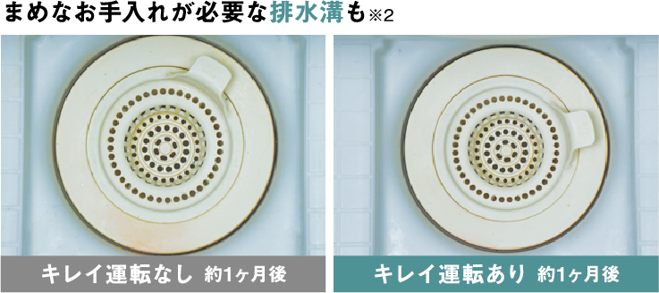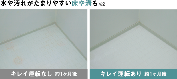 ※換気や床の掃除、使用状況などの条件によっては、 水が残ることがあります。