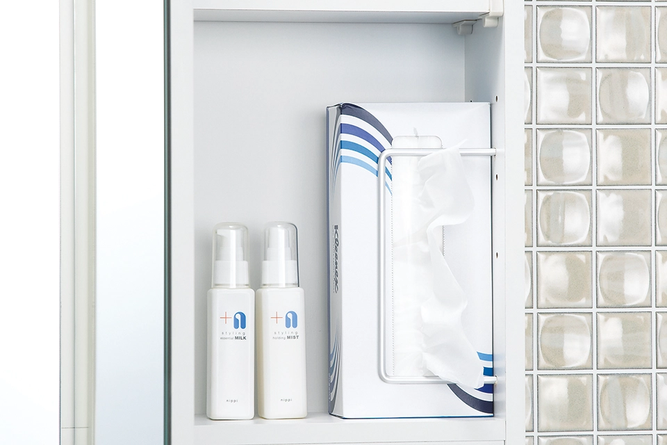 ティッシュが洗面室に常にあると便利!女性にうれしい工夫です。