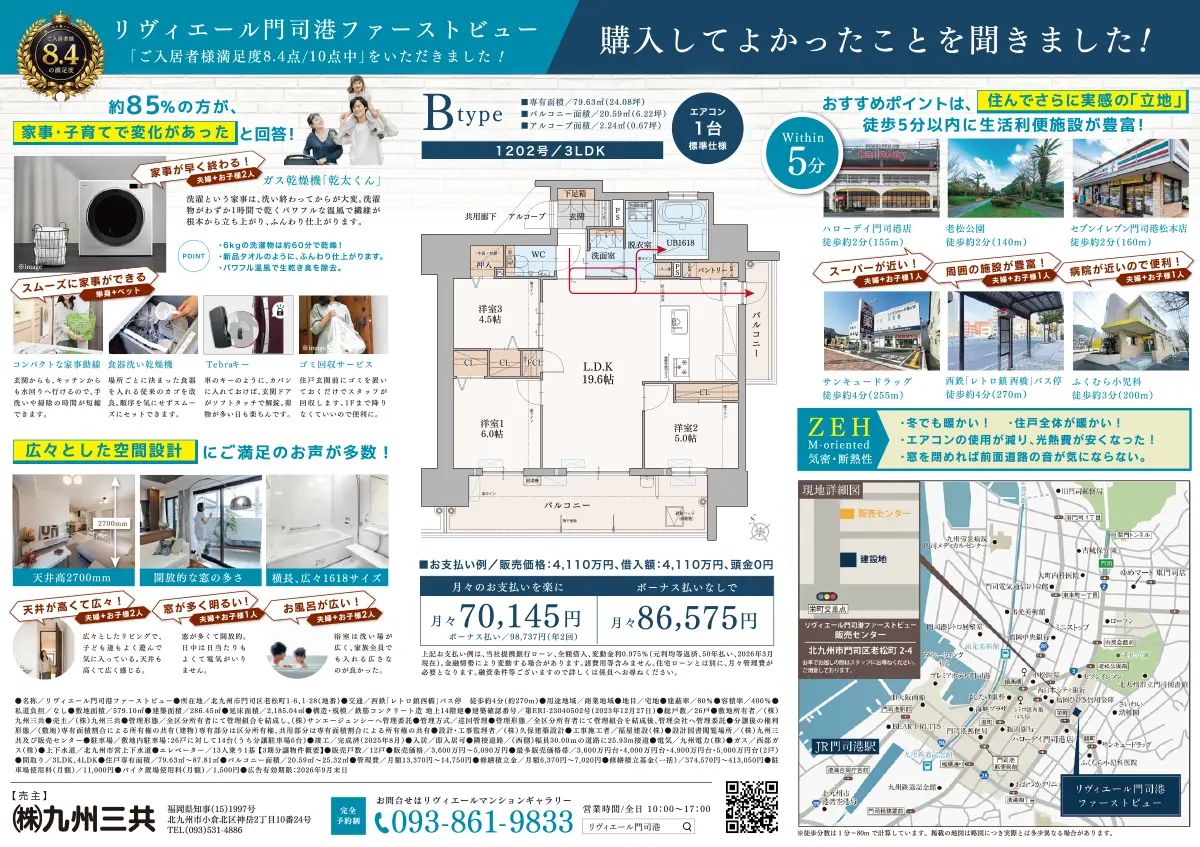 高層階では門司港の景色を独り占め。開放感とプライバシーを両立させた間取りです。