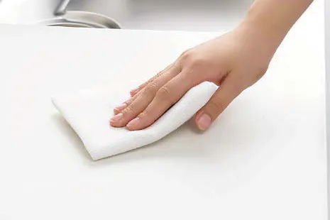 お手入れがしやすく、おしゃれで明るい彩りの人造大理石ワークトップです。