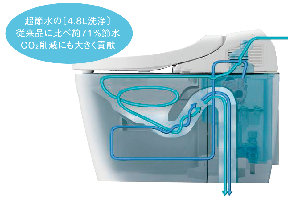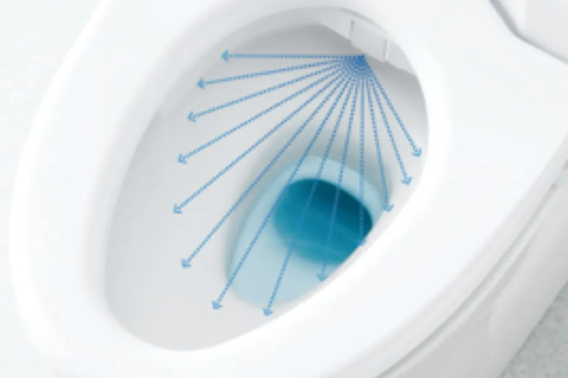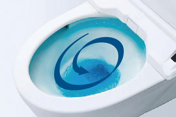 渦を巻くトルネード水流が、少ない水量を有効に使ってしつこい汚れもきれいに洗浄します。