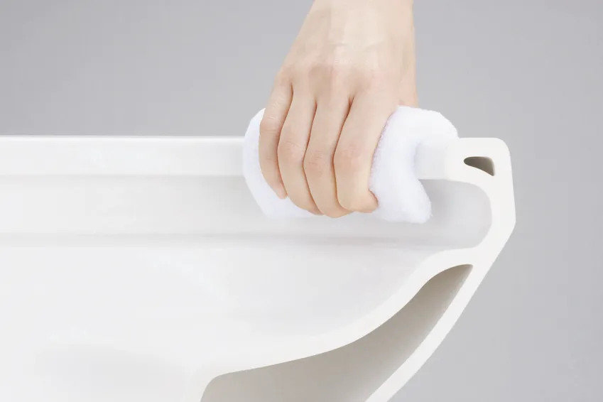 便座とノズルの素材に防汚効果の高い樹脂を採用。樹脂が汚れをはじくから、サッとひと拭きでお手入れ完了です。