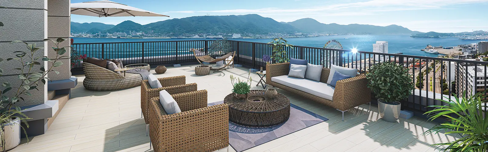 限定1邸。海峡ゆめタワーを眺める屋上の専用テラス付きペントハウス。