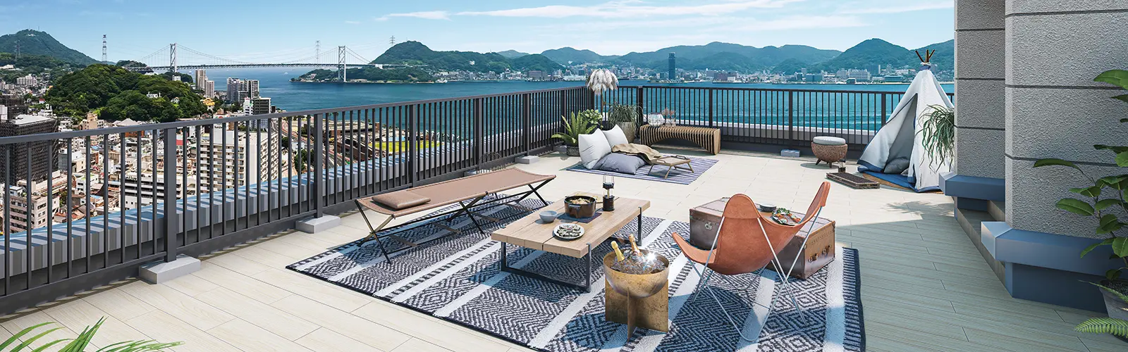 限定1邸。関門海峡&関門橋を眺める屋上の専用テラス付きペントハウス。