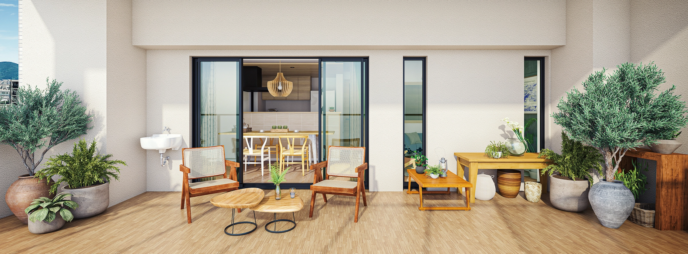 奥行き2.7m、ワイドスパンバルコニーは、新しい住空間。